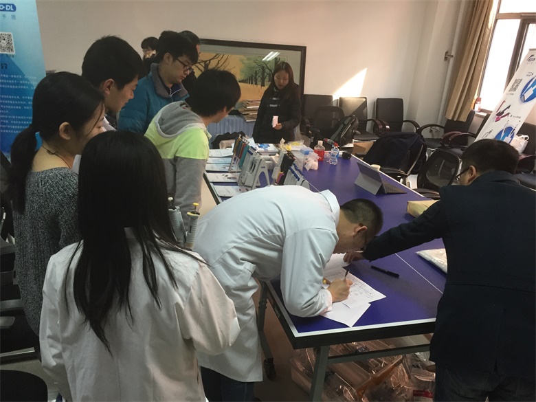 在實驗室中臨時簡易的展臺吸引了許多醫學科研一線的工作者前來咨詢和參與互動活動,現場還送出了很多精美禮品。