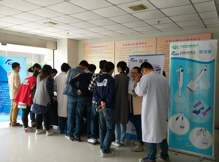 2016年5月9日-5月12日,寶予德(中國(guó))春季高校儀器巡回展第五站在江蘇三所著名高校如期舉行,BIO-DL寶予德和當(dāng)?shù)卮砩毯献髡钩隽艘埔合盗挟a(chǎn)品和分子生物學(xué)相關(guān)實(shí)驗(yàn)儀器。優(yōu)良的產(chǎn)品,貼心的服務(wù),精美的禮品,吸引了許多科研工作者前來(lái)問(wèn)詢(xún)。