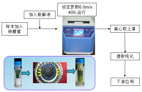 樣本加入研磨管——加入裂解——設定轉速和溫度和時間等參數(shù)——運行——離心取上清——游下游實驗及應用,只需幾分鐘即可完成24個樣本的前處理。徹底將實驗人員從繁雜危險的液氮研磨中解放出來,同時,Easy Extract生物樣品研磨儀無需液氮或干冰,通過自帶的制冷系統(tǒng),使在研磨過程中樣品保持低溫狀態(tài),更大的避免了生物大分子活性物質(zhì)的降解。